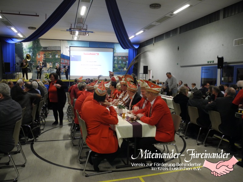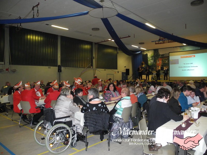 Der Verein Miteinander-Füreinander feierte am Samstag, den 07. Januar 2017 sein 20-jähriges Bestehen. Und viele waren der Einladung des Vereins gefolgt. So konnte die Vorsitzende Gabriele Menke eine große Zahl von Gästen begrüßen, unter Ihnen Landrat Günter Rosenke, die Bürgermeisterin der Gemeinde Weilerswist Anne Horst sowie Vertreter von Vereinen und Organisationen, die den Verein über lange Jahre hinweg unterstützten. Anwesend war auch Erika Ebersbach, die Gründungsvorsitzende, die für Ihre Arbeit von den Anwesenden mit viel Applaus bedacht wurde.